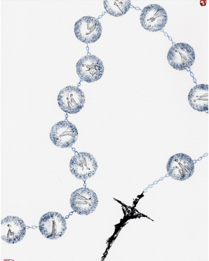 ‘Zoals elke dag sinds onze ontvoering begin ik in stilte de rozenkrans te bidden. Ongetwijfeld door het trauma ben ik alle andere gebeden, alle liederen die ik kende, vergeten. Het lijkt alsof mijn geheugen is uitgewist. Ik zoek tevergeefs, herinner me niets meer behalve de rozenkrans. Nochthans verloor ik in de loop van de jaren in Mar Moussa en vervolgens in Mar Elian de gewoonte om die te reciteren. Het herhalen van vijftig weesgegroetjes verveelde me. Maar sinds vier dagen was dit alles veranderd: de Ave Maria’s waren als een SOS naar de hemel in de onverklaarbare zekerkheid dat ze worden gehoord. Ik ben ervan overtuigd dat Maria me door de rozenkrans zo dicht mogelijk tot bij Jezus leidde. Het is bovendien geen automatische herhaling meer, maar een ware meditatie: ik sta lang stil bij elke mysterie van het leven van Jezus. Ze spreken tot mijn ziel met een verbazingwekkende kracht. Ik bemediteer hem in de kribbe, maar ook tijdens de lijdensweg of de verrijzenis. Het troost me.‘
