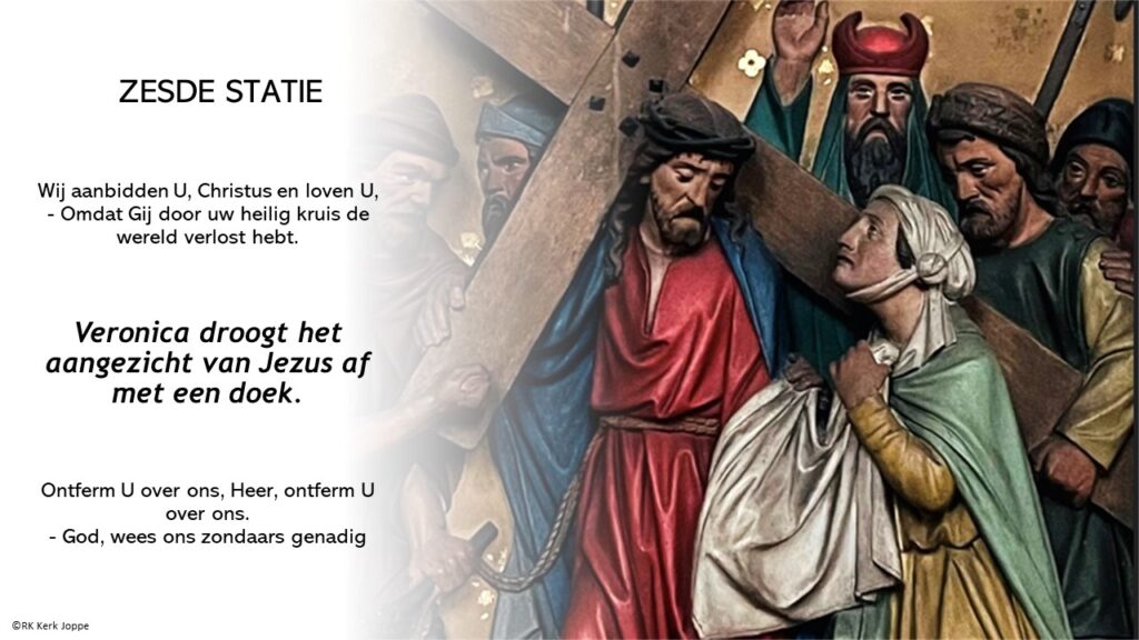 Op weg naar de Goede Week en Pasen ontvangt u met regelmaat teksten van pater P. Penning de Vries SJ met één beeld van een kruiswegstatie uit de Joppekerk. De kruisweg telt veertien lijdenstaferelen, de zogenoemde staties.