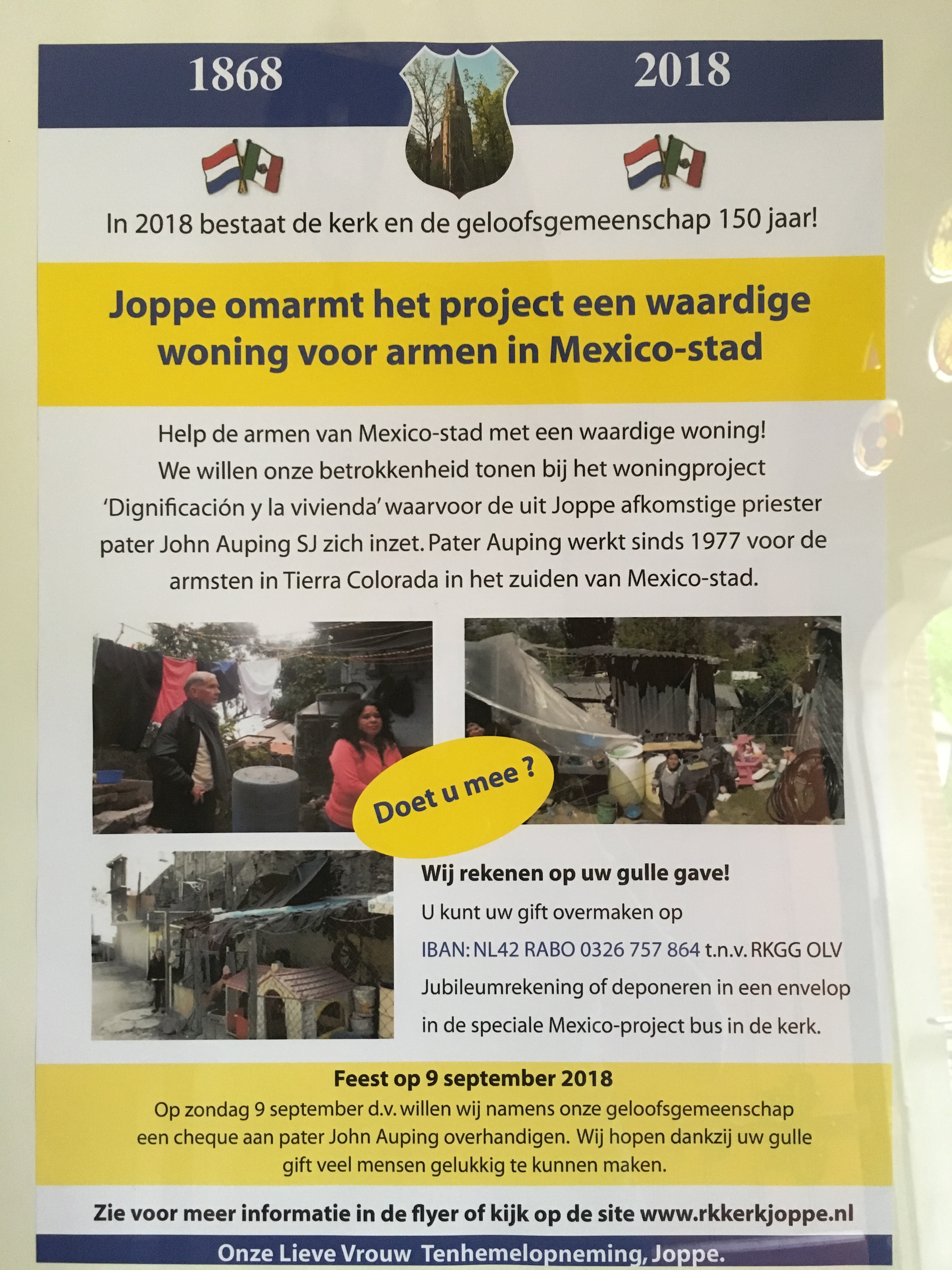 In het jubileumjaar hebben we het project van pater John Auping SJ omarmd. Het project bestaat uit het renoveren van de woningen van de armste die getroffen zijn door de aardbeving in 2017. De inzameling voor het Mexico-project heeft € 8.026,57 opgebracht.