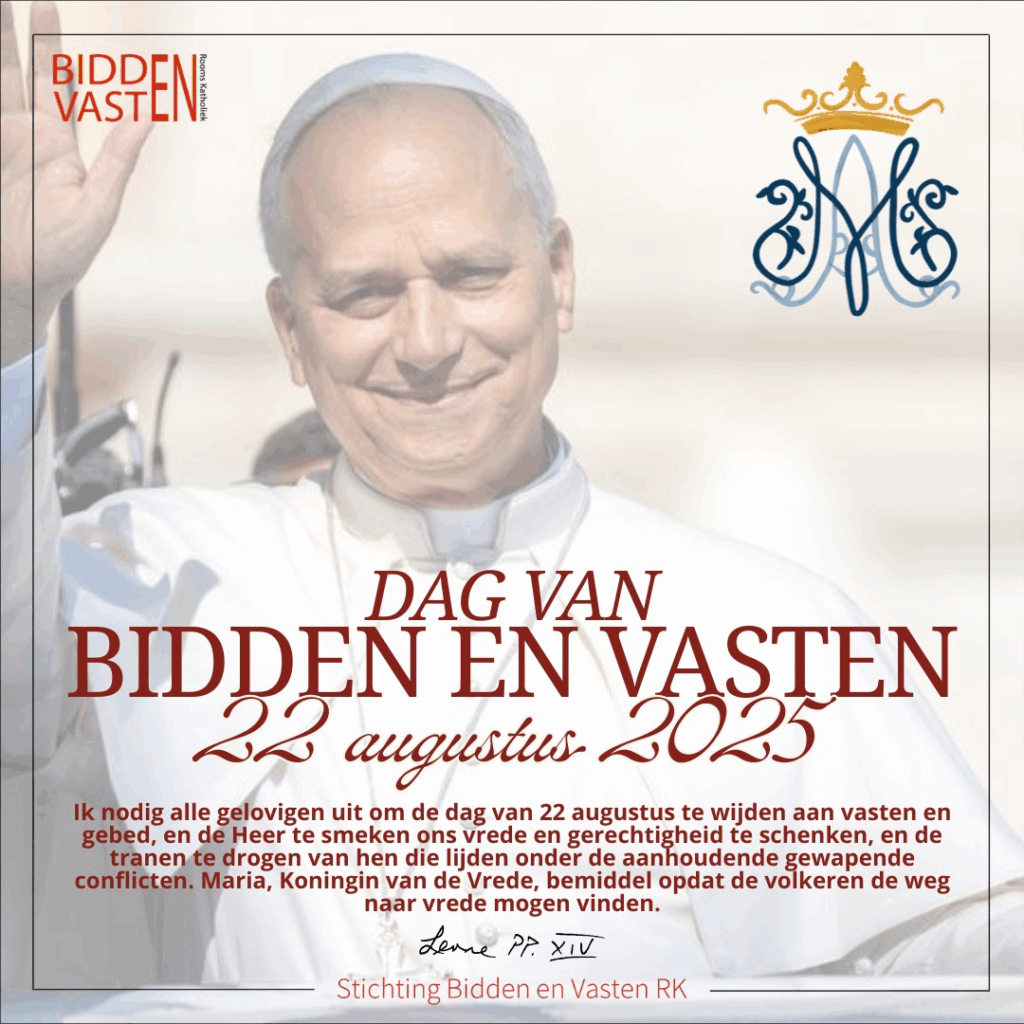 Vandaag 20 augustus tijdens zijn wekelijkse audiëntie in het Vaticaan riep paus Leo XIV alle gelovigen op om vrijdag 22 augustus te wijden aan een wereldwijde dag van gebed en vasten voor vrede. Hij verwees naar de ‘oorlogen in het Heilige Land, Oekraïne en vele andere delen van de wereld’.