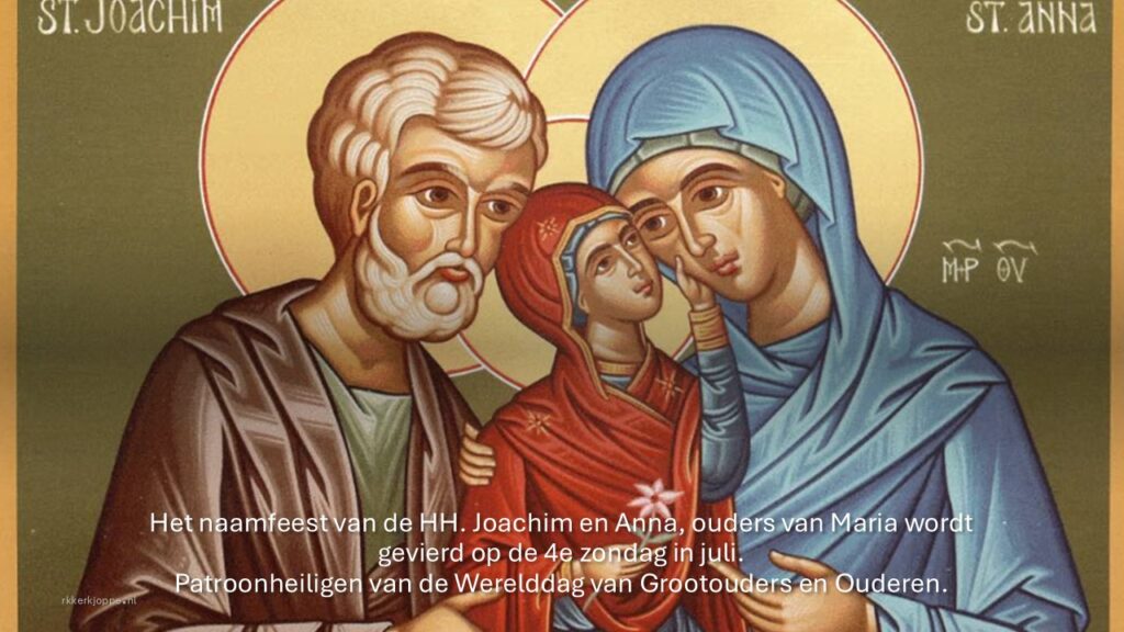 De vierde zondag van juli viert de Kerk de feestdag van Jezus’ grootouders Joachim en Anna. Sinds 2021 is het de Werelddag van Grootouders en Ouderen.